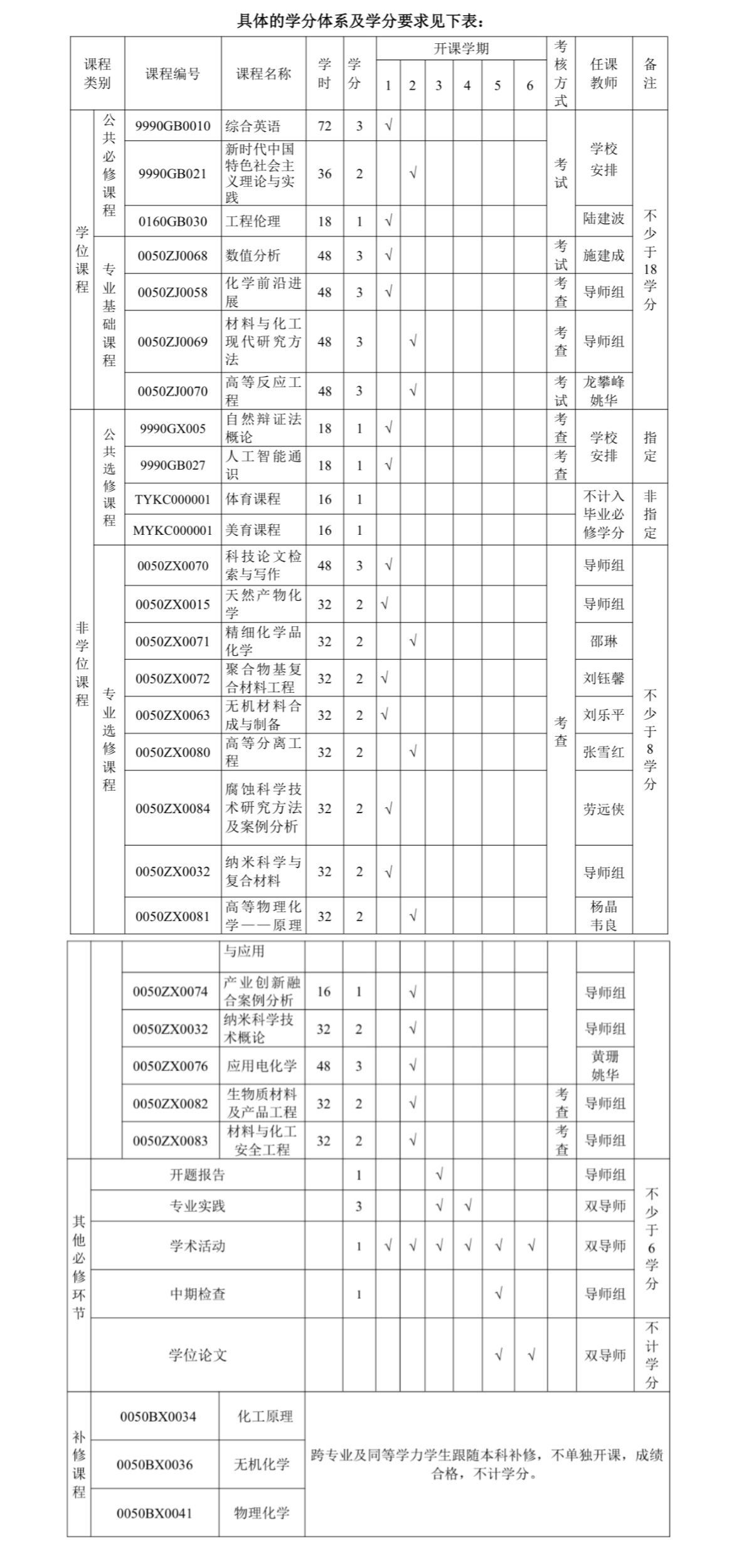 五、课程设置及必修环节要求