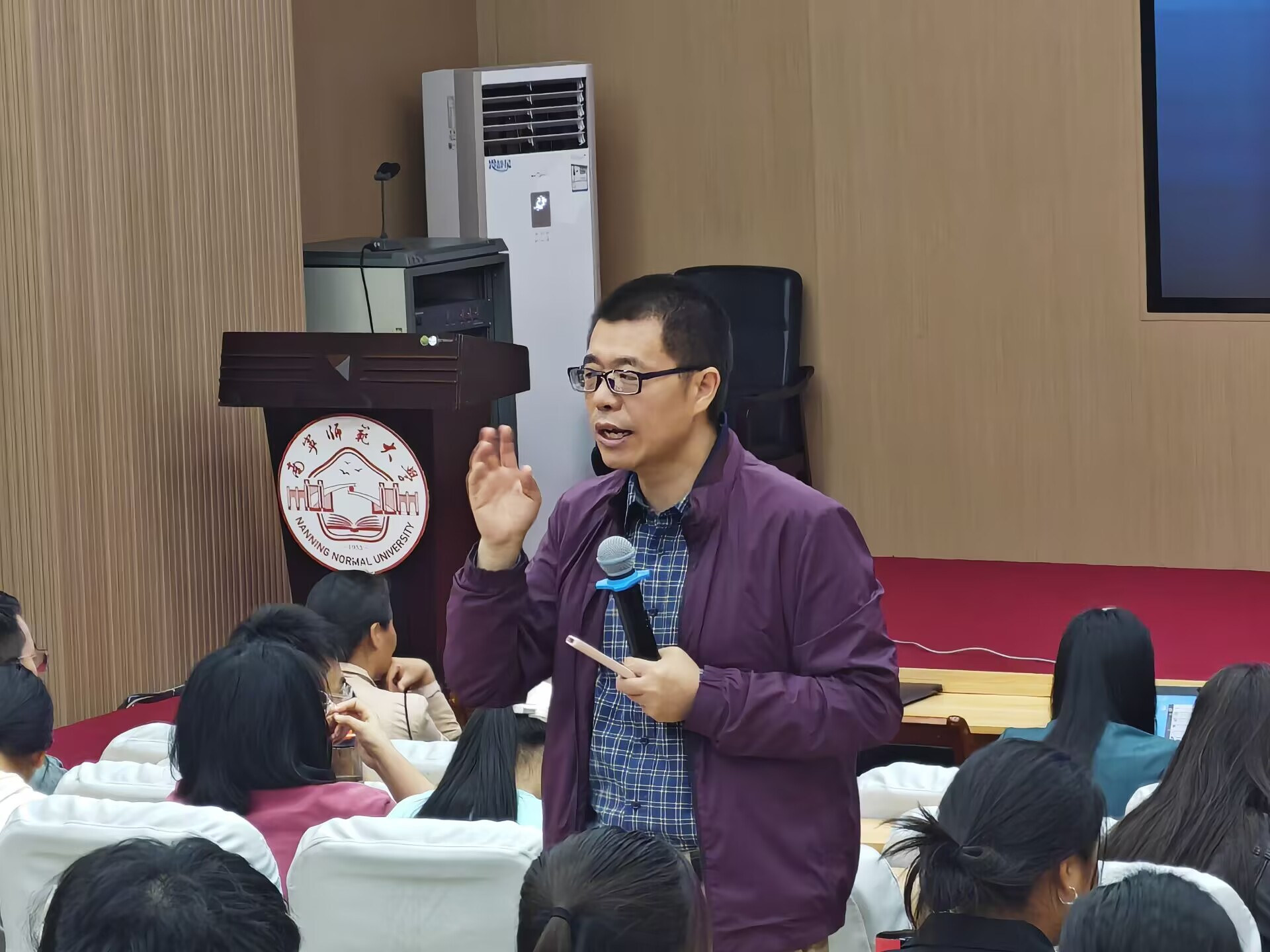 苏炜院长、学院全体教师及学科教学(化学)专业硕士研究生参会,本次讲座由朱汝葵副院长主持。