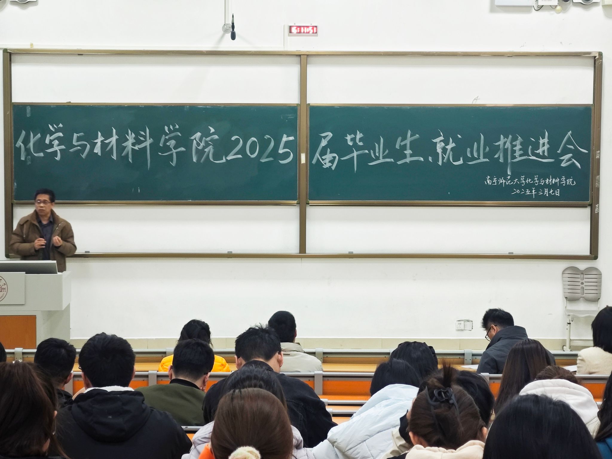 武鸣校区1号教学楼214教室成功召开2025届毕业生就业推进会。学院领导班子出席会议,团委书记王立彬老师主持。