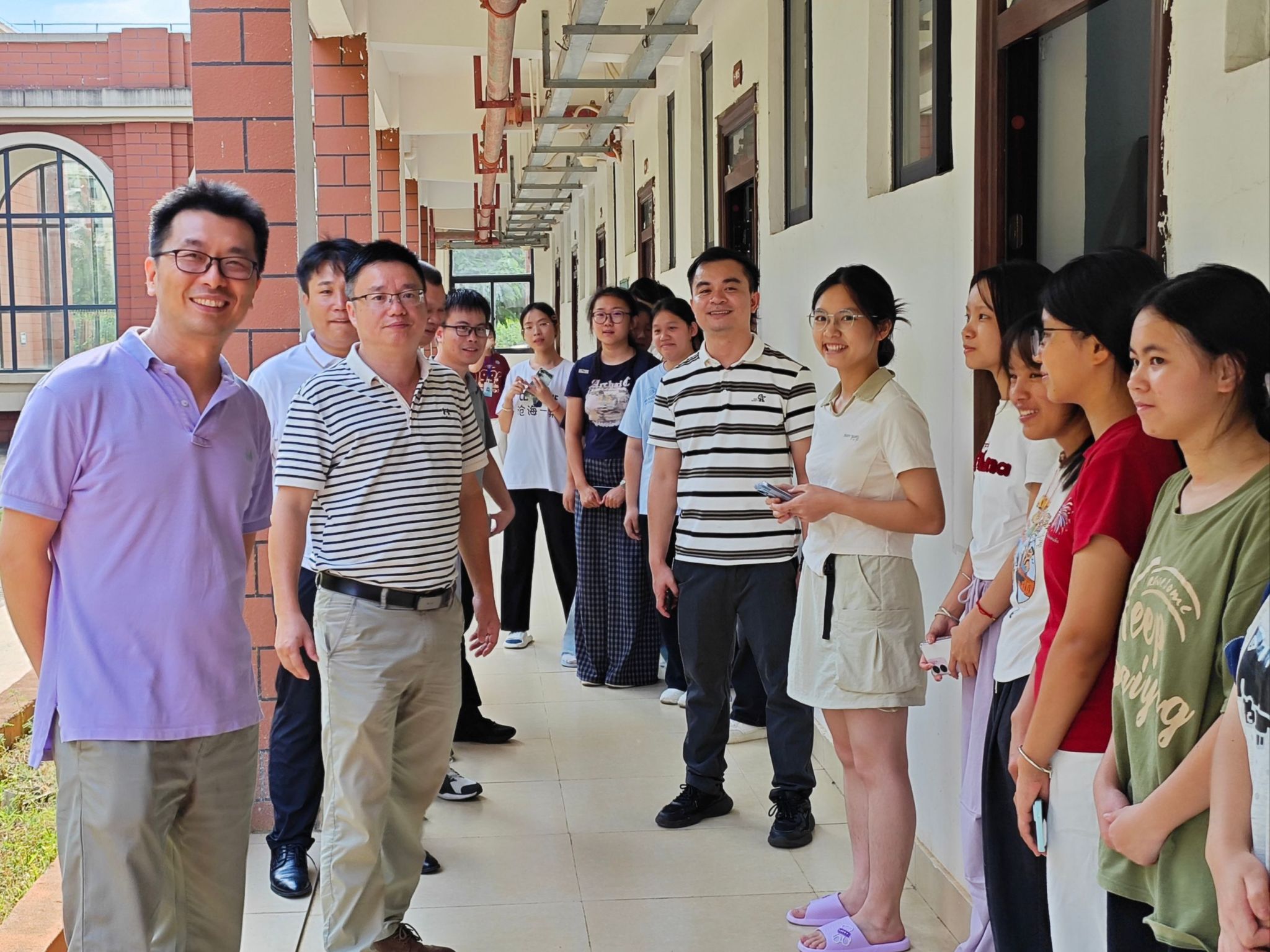 新生入学入住情况,化学与材料学院于9月6日下午在武鸣校区开展了新生宿舍走访活动。学院党委书记陈宗武、院长苏炜、党委副书记陈今浩、副院长朱汝葵、副院长杨晶、辅导员老师及25级班主任参加。